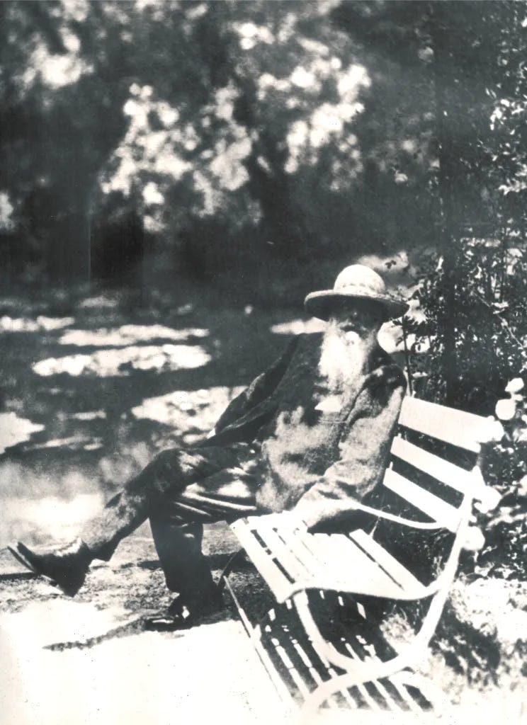 I don’t think he ever retired. But he did put on a new suit when the photographer came to visit him at his country estate. The suit, the hat, and the boots look new, his beard freshly barbered. He’s about to say something. What is it he wants to tell you?